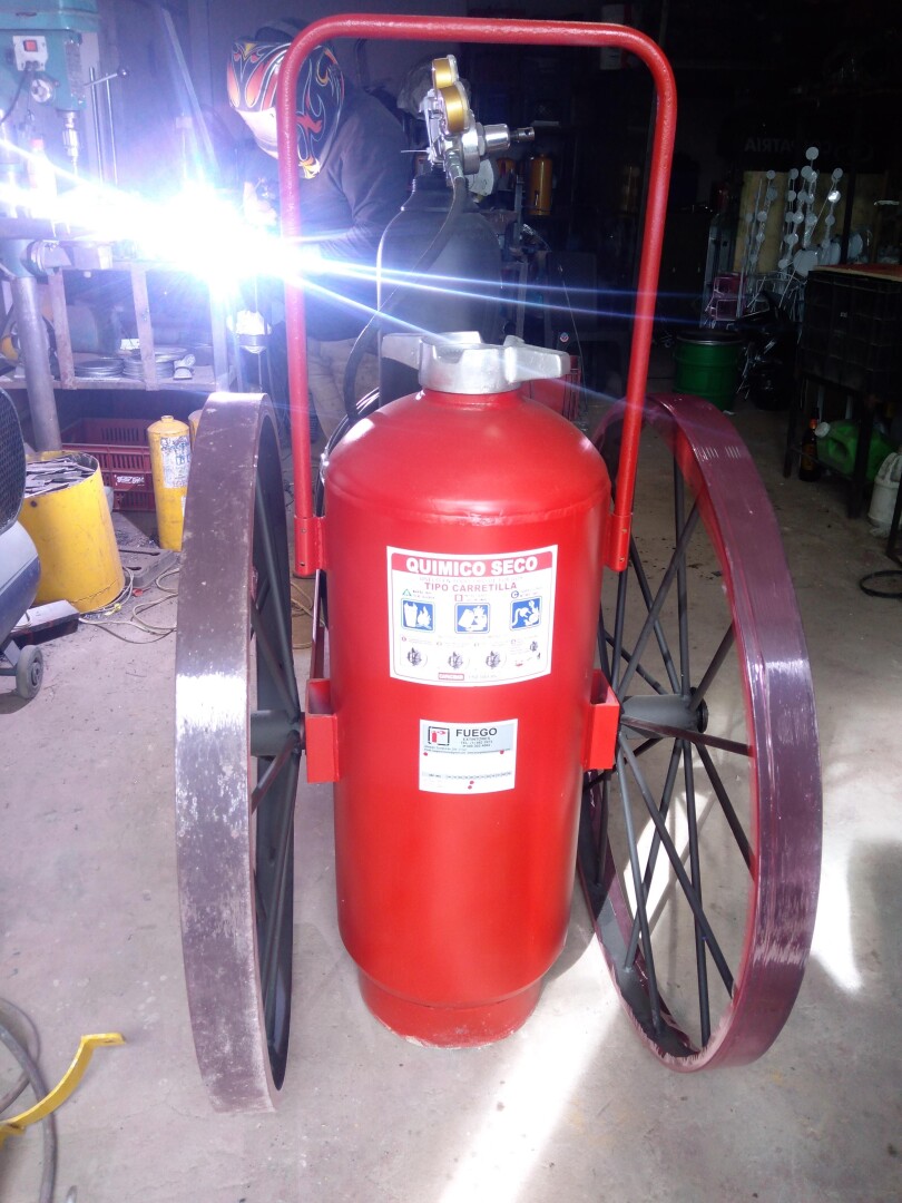Extintor rodante de capsula externa de 150 o 350 lbs, cargado con Polvo Químico Seco (BC, ABC o Purpura K), Fabriccion nacional. Aplicaciones típicas: Refinerías, plantas químicas, instalaciones de construcción etc. Según el agente extintor, los extintores pueden combatir incendios Clase A, B y C.